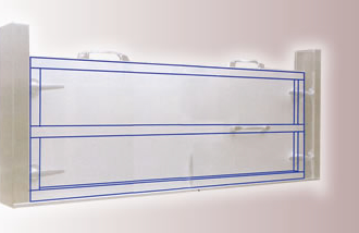 支柱にアルミ軽量パネルを差し込むだけの簡単ワンタッチロック方式で基本型。最もシンプルなスタイルで低コスト。内付け、外付け、連結、2段タイプがありそれぞれ下部レールの有無もラインナップ。豊富なバリエーションで、あらゆる所への設置が可能。
